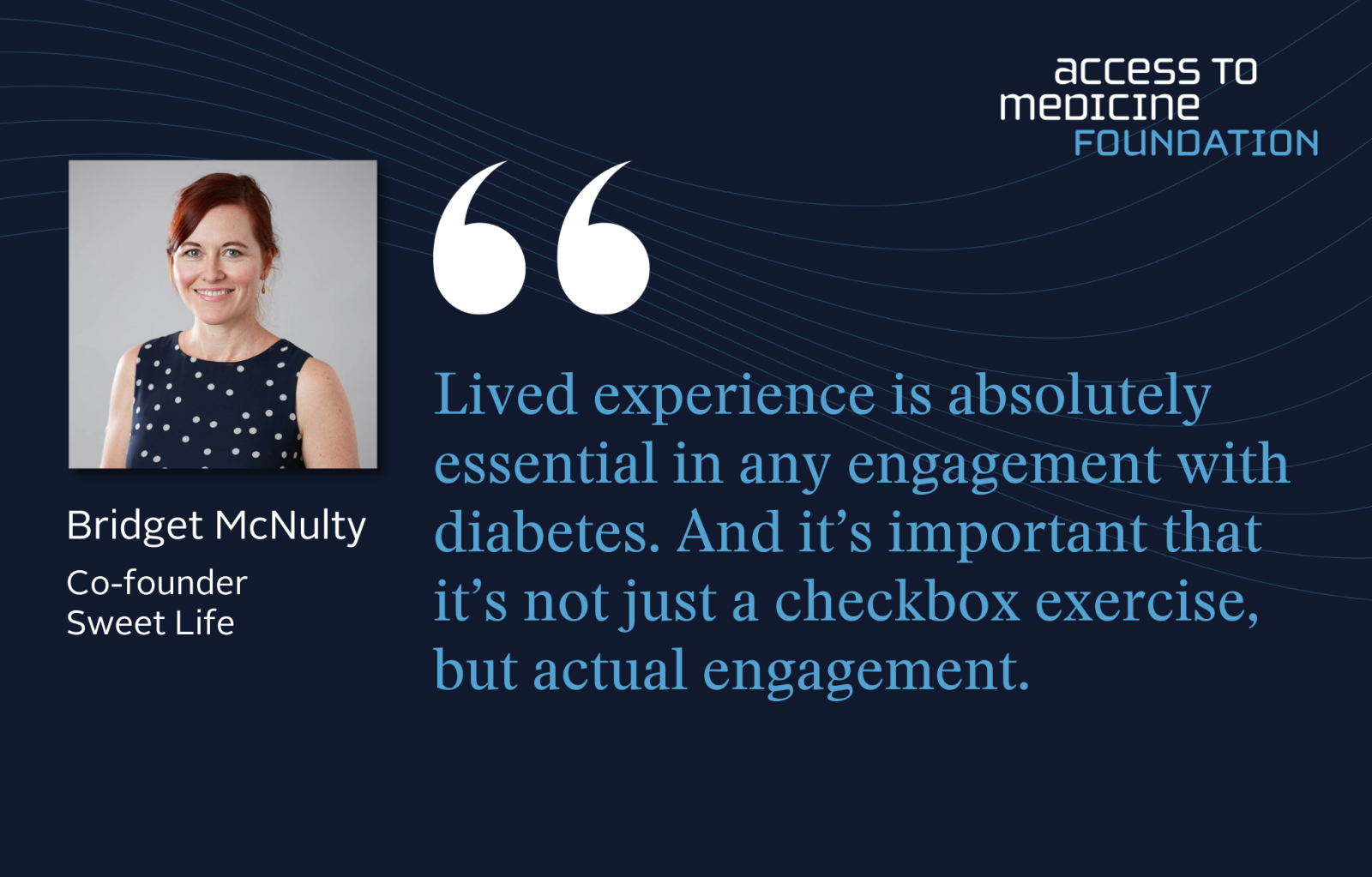 In particular, the Access to Medicine Foundation’s engagement with both lived experience and research is very powerful. The Foundation commits to using “a blend of research and stakeholder dialogue to identify solutions for companies to expand access to insulin and diagnostics,” and I think this is an approach that can ensure the right voices and perspectives are captured.