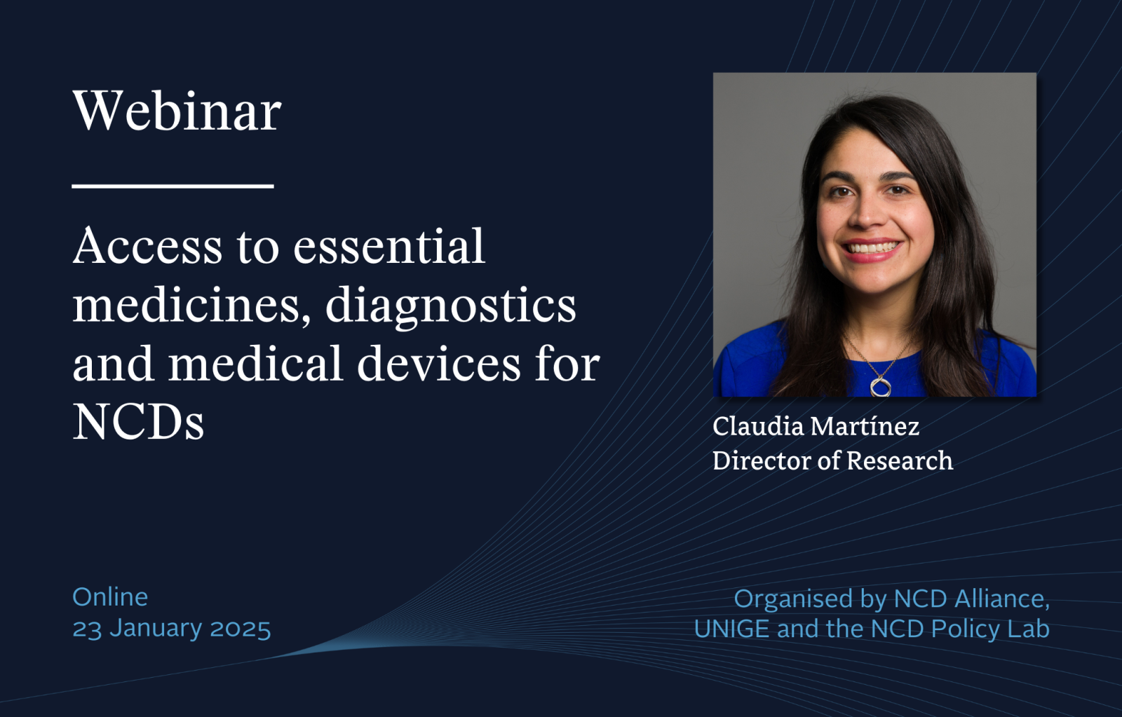 Access to essential medicines, diagnostics, and medical devices for non-communicable diseases (NCDs) is a critical challenge, particularly in low- and middle-income countries (LMICs). To address these barriers, the NCD Alliance, UNIGE, and the NCD Policy Lab are hosting a webinar titled “Access to Essential Medicines, Diagnostics, and Medical Devices for NCDs: Priorities for the 4th UN High-Level Meeting (HLM) on NCDs”.