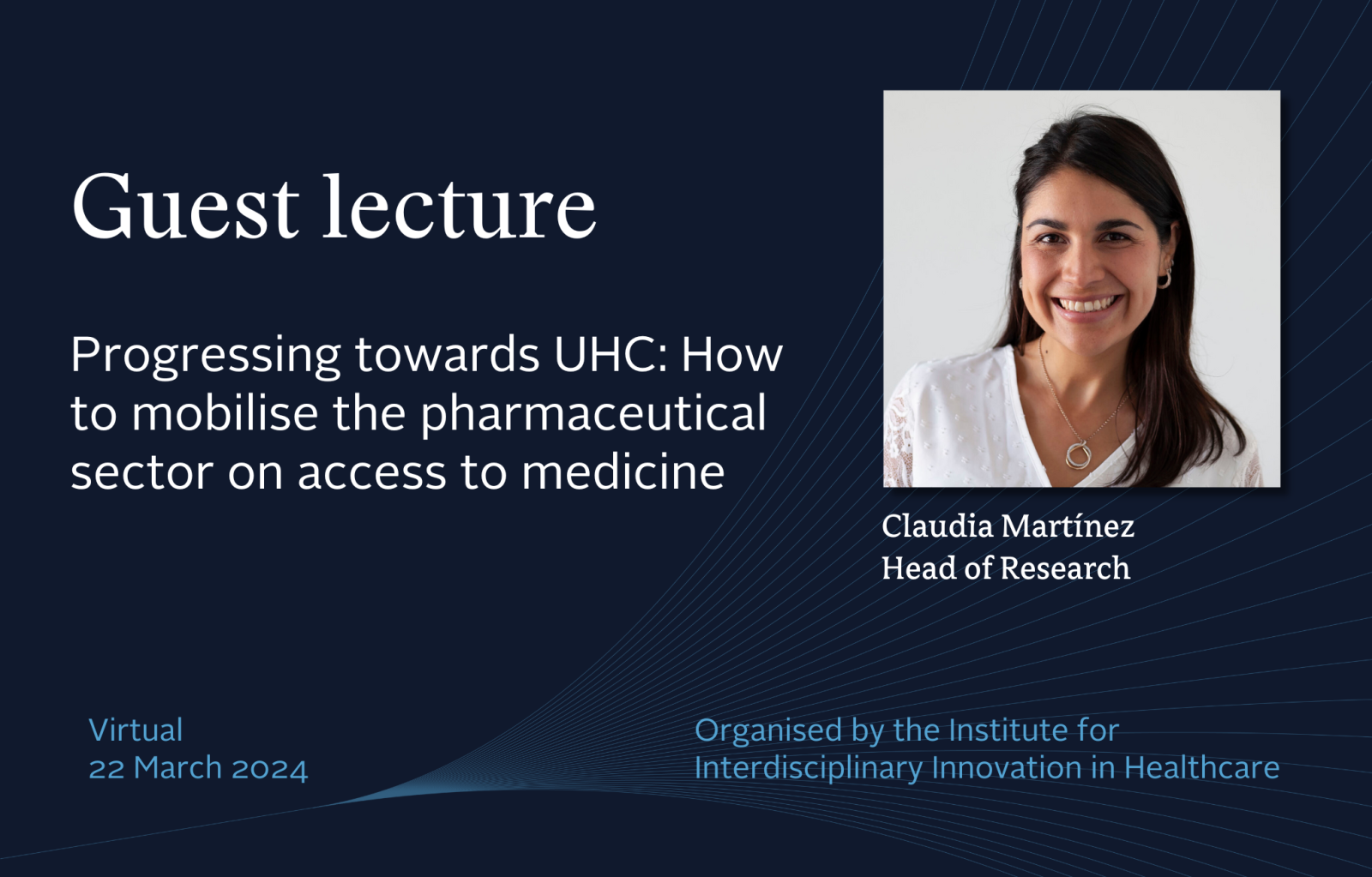 Claudia’s guest lecture, titled “Progressing towards UHC: How to mobilise the pharmaceutical sector on access to medicine”, will focus on the challenges and opportunities tied to the pursuit of universal health coverage (UHC), a UN Sustainable Development Goal.