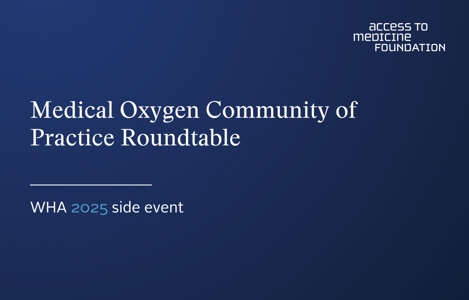 Access to medical oxygen is a critical component of healthcare, yet many low- and middle-income countries (LMICs) still face challenges in ensuring a reliable supply. To address this, the Access to Medicine Foundation has established the Medical Oxygen Community of Practice (CoP), uniting key stakeholders to drive sustainable solutions. As part of this initiative, the CoP will convene a roundtable session alongside the 2025 World Health Assembly, building on past collaborations to further strengthen sustainable access to medical oxygen in LMICs. Â