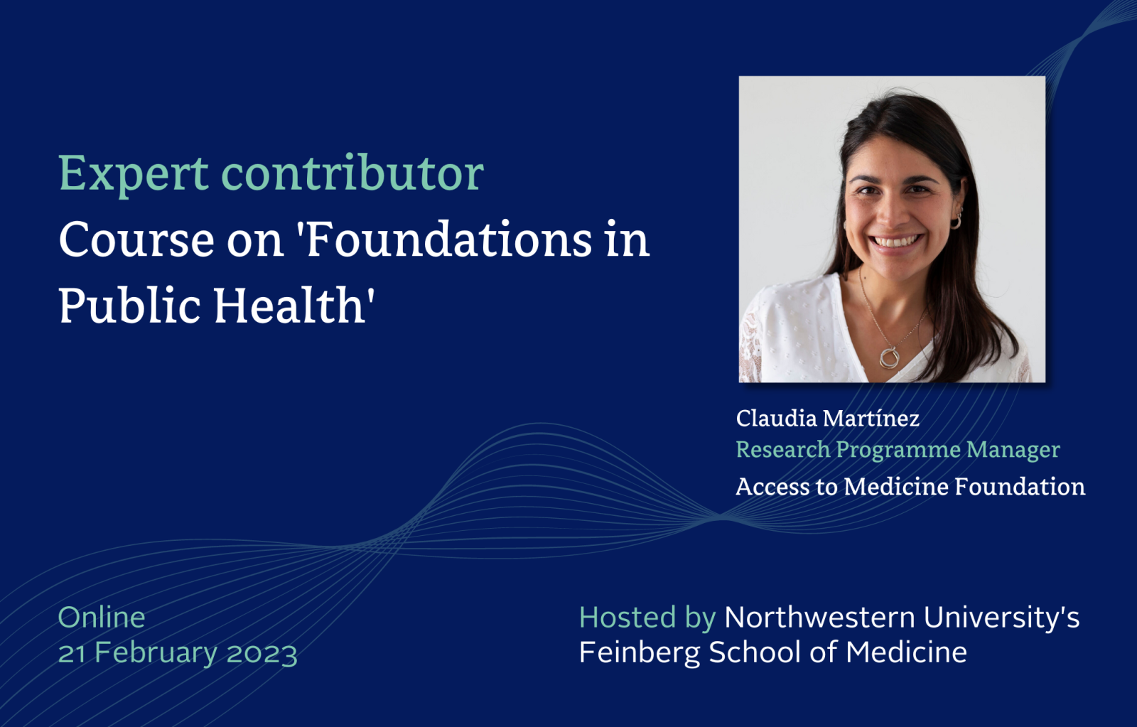 Claudia will participate as an expert discussant in the course on “Foundations in Public Health”, during which she will share the Foundation’s proven and tested model of incentivising essential healthcare companies to increase access to medicine.