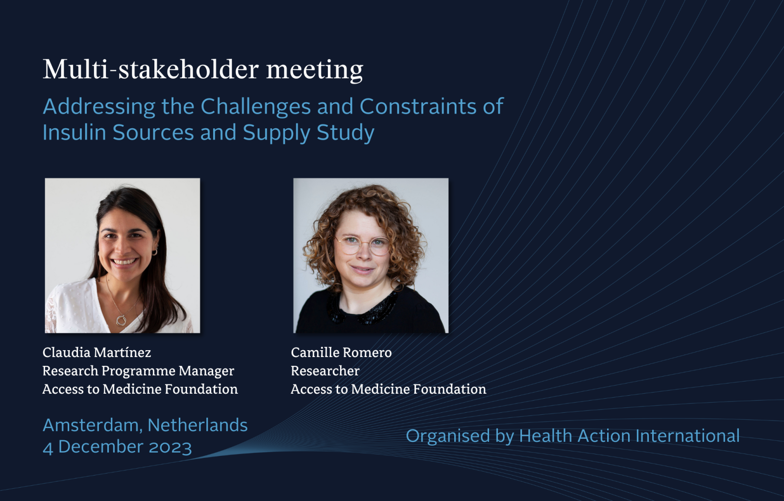 Representing the Access to Medicine Foundation’s Diabetes Care Programme, Research Programme Manager Claudia Martínez and Researcher Camille Romero will join the Meeting as panelists for a roundtable discussion, which will focus on improving access to insulin and glucose monitoring devices.