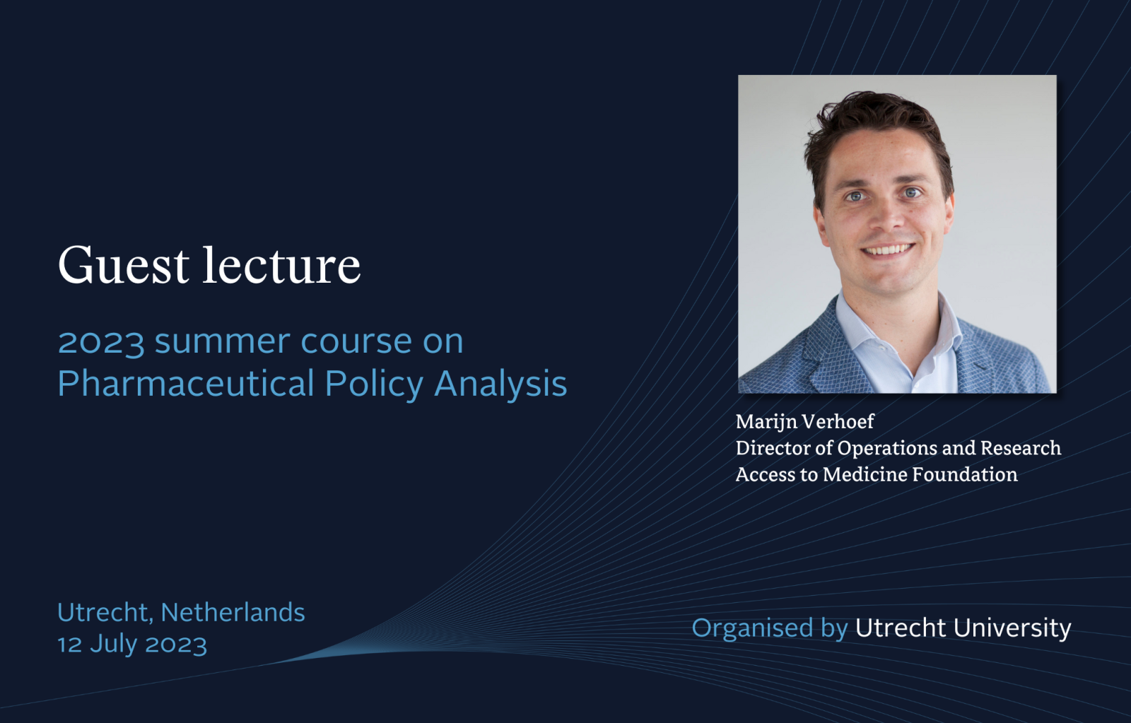 In addition to his lecture, Marijn will also participate in a panel discussion on “Access to medicines as a human right”, which is co-organised with University Medical Centre Utrecht’s summer course on Global Health and Equity.