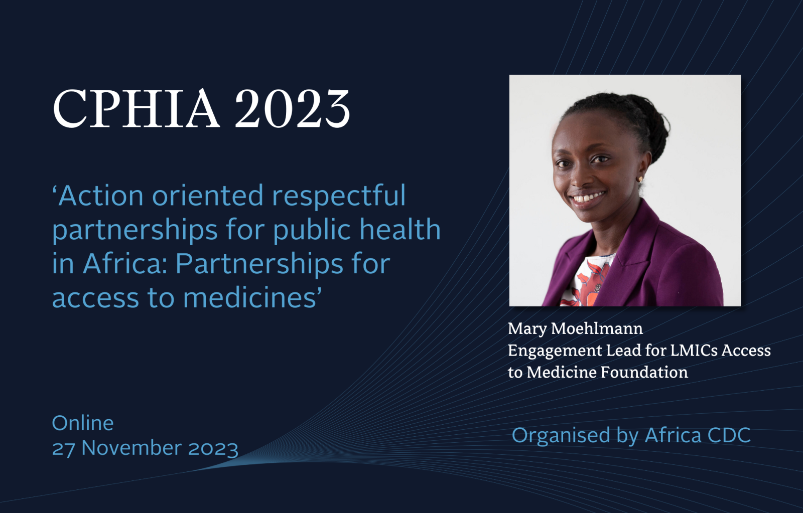 Mary has been invited to speak on a panel discussion on 27 November, titled “Action oriented respectful partnerships for public health in Africa: Partnerships for access to medicines”. During the session Mary will draw on the Foundation’s work – including the Access to Medicine Index – to highlight examples of how partnerships between the pharmaceutical industry and various stakeholders have been pivotal in enhancing access to medicine in LMICs.