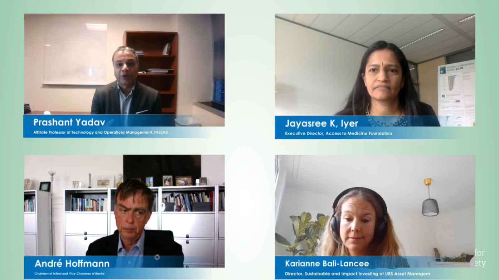 Jayasree will discuss findings from the 2021 Access to Medicine Index. She will also address the materiality of the access-to-medicine issue and discuss the role and implications of investors in securing commitments in improving access.
