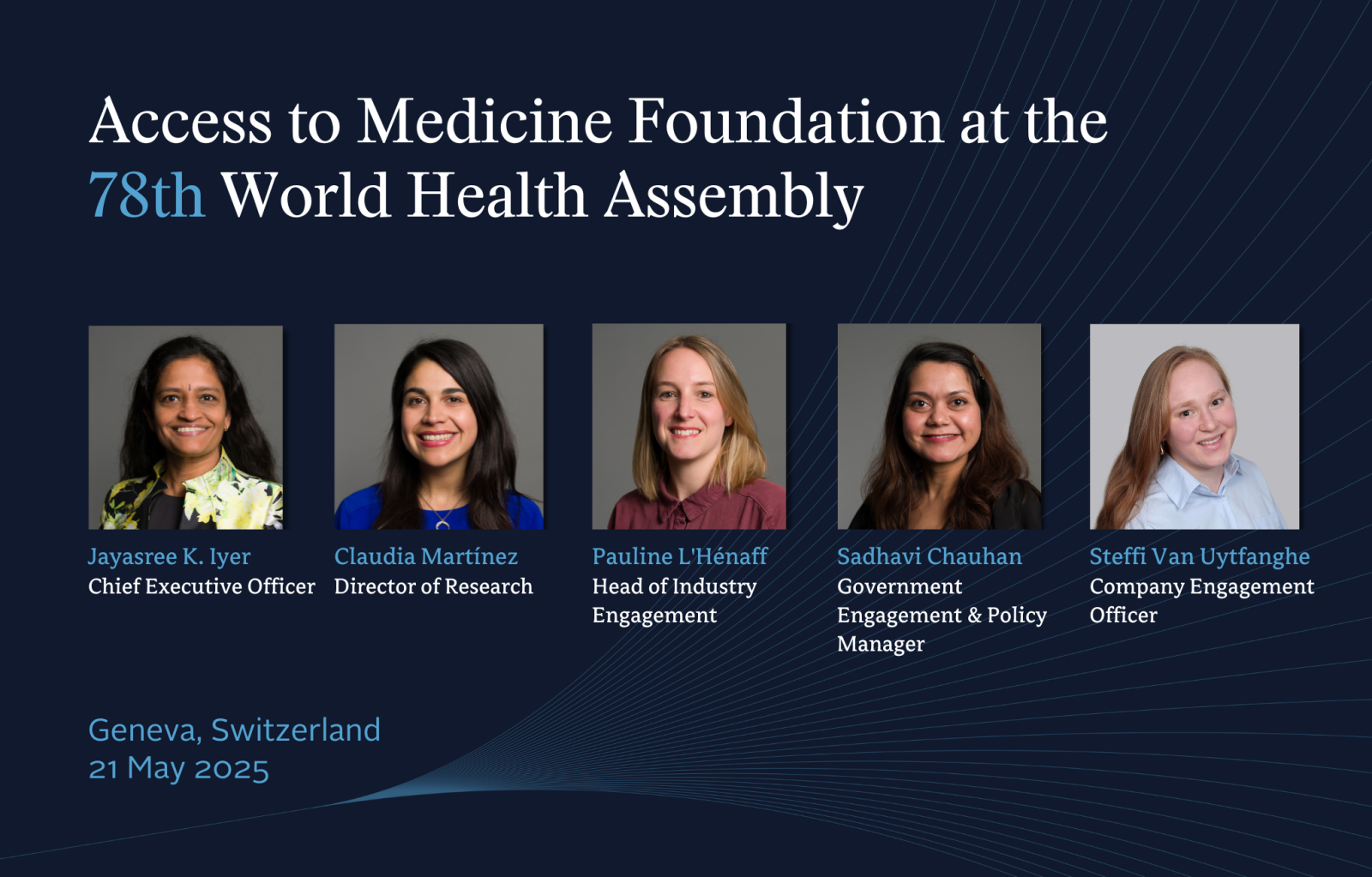 Over the three-day WHA 2025 programme, the team will discuss topics central to the Access to Medicine Foundation’s work and present findings and insights from some of our programmes and latest publications: