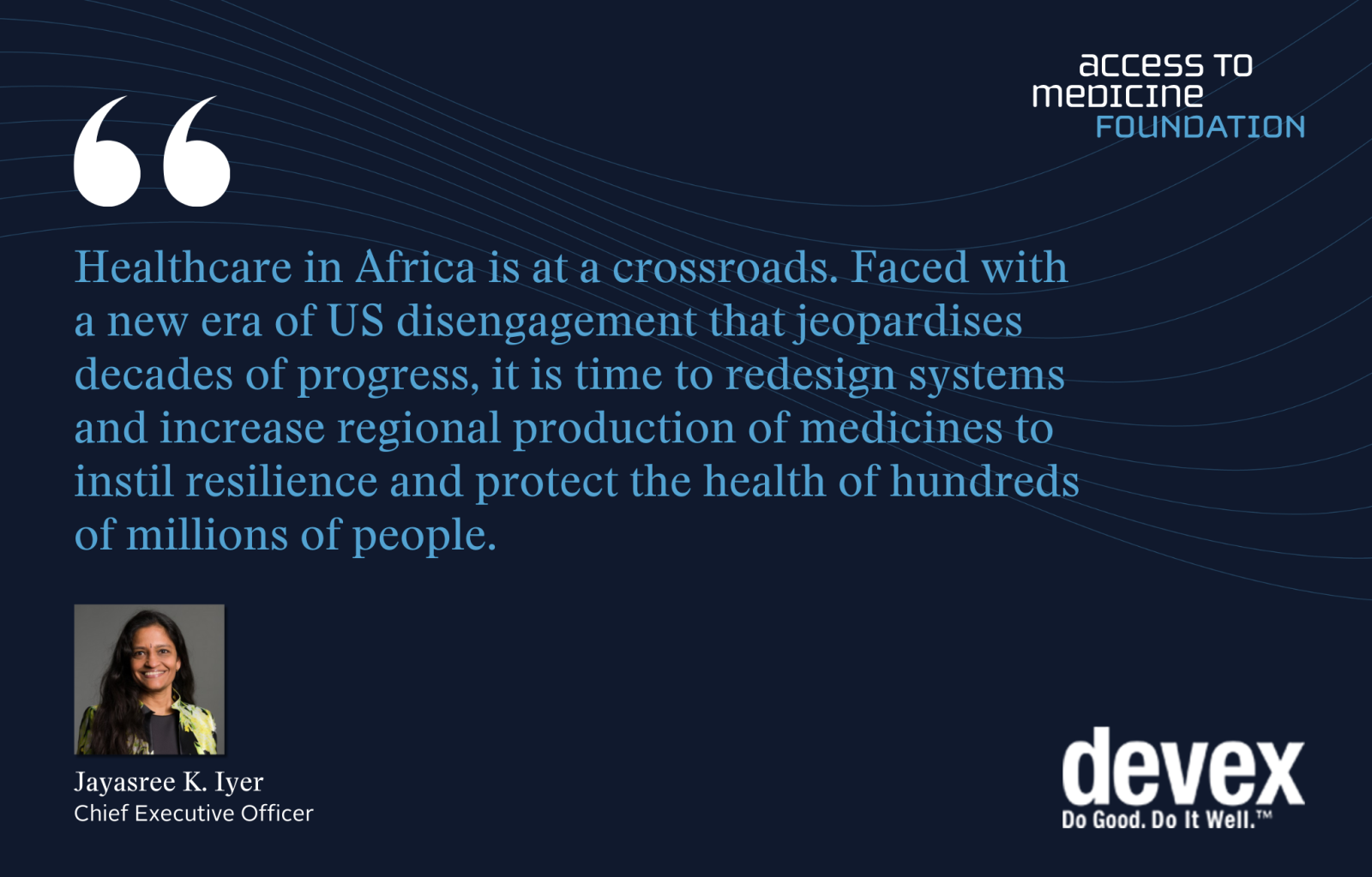 Iyer discusses opportunities to bolster local manufacturing, and in turn, reduce reliance on foreign aid. Some African manufacturers already produce essential medicines and are even expanding into vaccines and complex medicines such as biologics. However, without government incentives, such as tax breaks and offtake agreements to help domestic manufacturers compete in the global market, this avenue will present significant challenges.