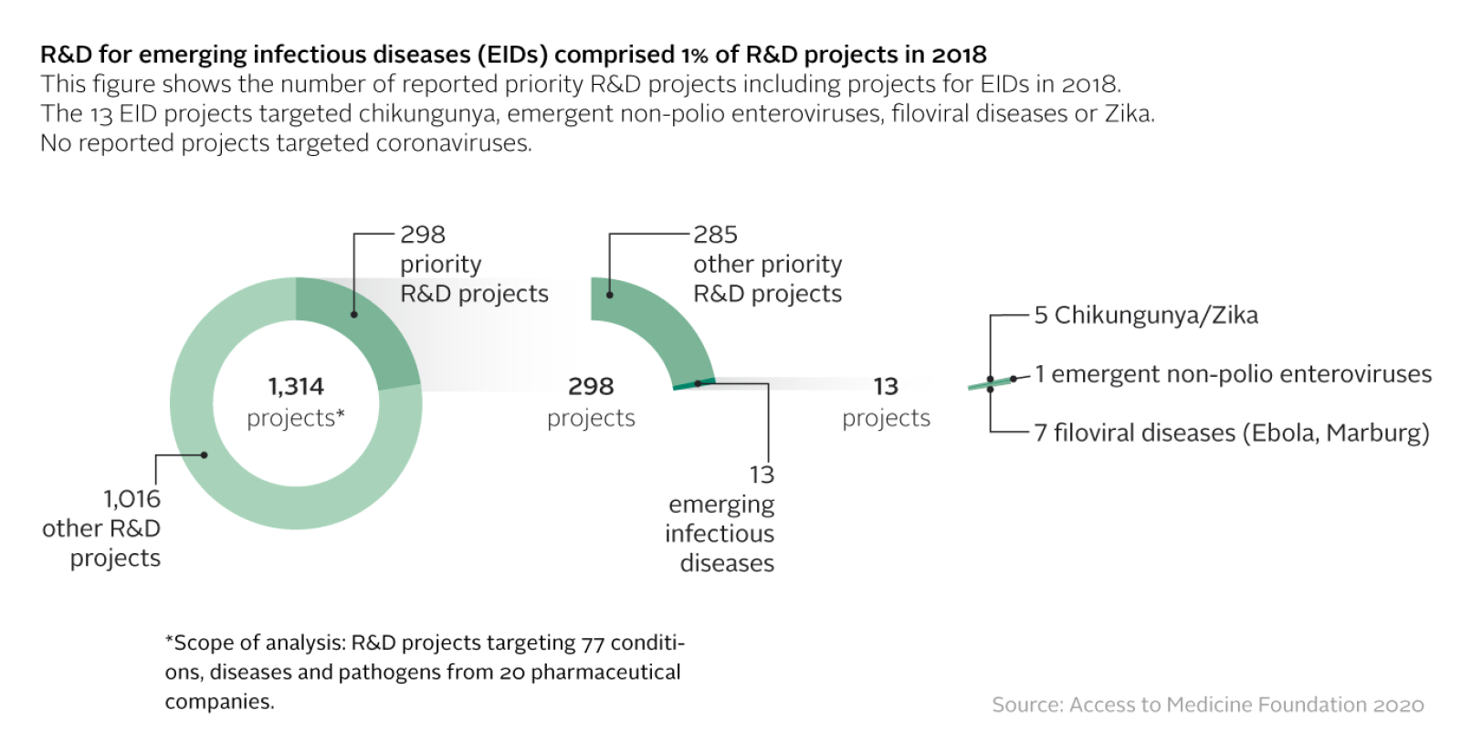 Despite rapid action from some companies, the fragility and reach of the industry’s ambition is troubling when it comes to halting the pandemic in low- and middle-income countries. Actions are concentrated amongst few players, repeating a pattern revealed by our research into pharma company responses to global health priorities. There had been precious little engagement prior to this year in emerging infectious disease research, and only a handful of large companies remain in the development of new antibiotics.