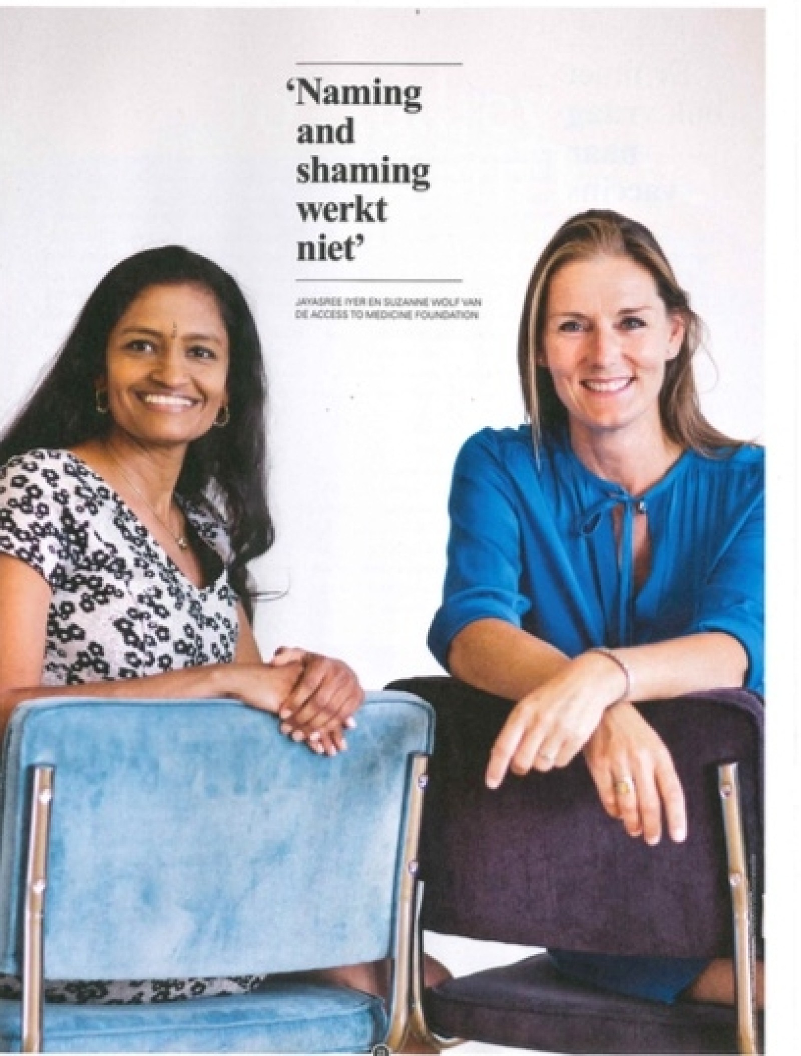 Margot de Graaff from the UNICEF Netherlands magazine interviews Jayasree K. Iyer and Suzanne Wolf regarding the pharmaceutical industry, the Access to Medicines Index and the upcoming Access to Vaccines Index.